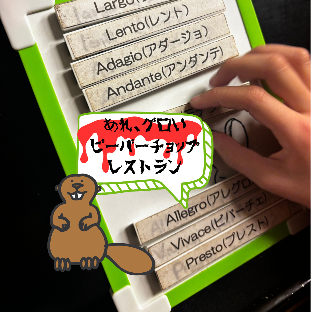 「あれ、グロい(アレグロ)ビーバーチョップ・レストラン(ビバーチェ・プレスト)」
