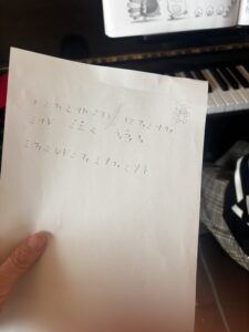 生徒さんの楽譜の間から小さなメモがパラパラと落ちてきました